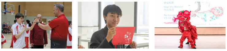 学生们在上学期末的圣诞庆典和今年的春节庆典活动都展现了自己的才华,也参加过校内举办的体育、数学、诗歌、阅读等比赛。在三月底的时候,学校将会举行第一次学院之间的体育竞赛。作为一所新学校,我们还在不断发展和培养自己的竞赛团队,并将会参加未来的一些校际赛事。
