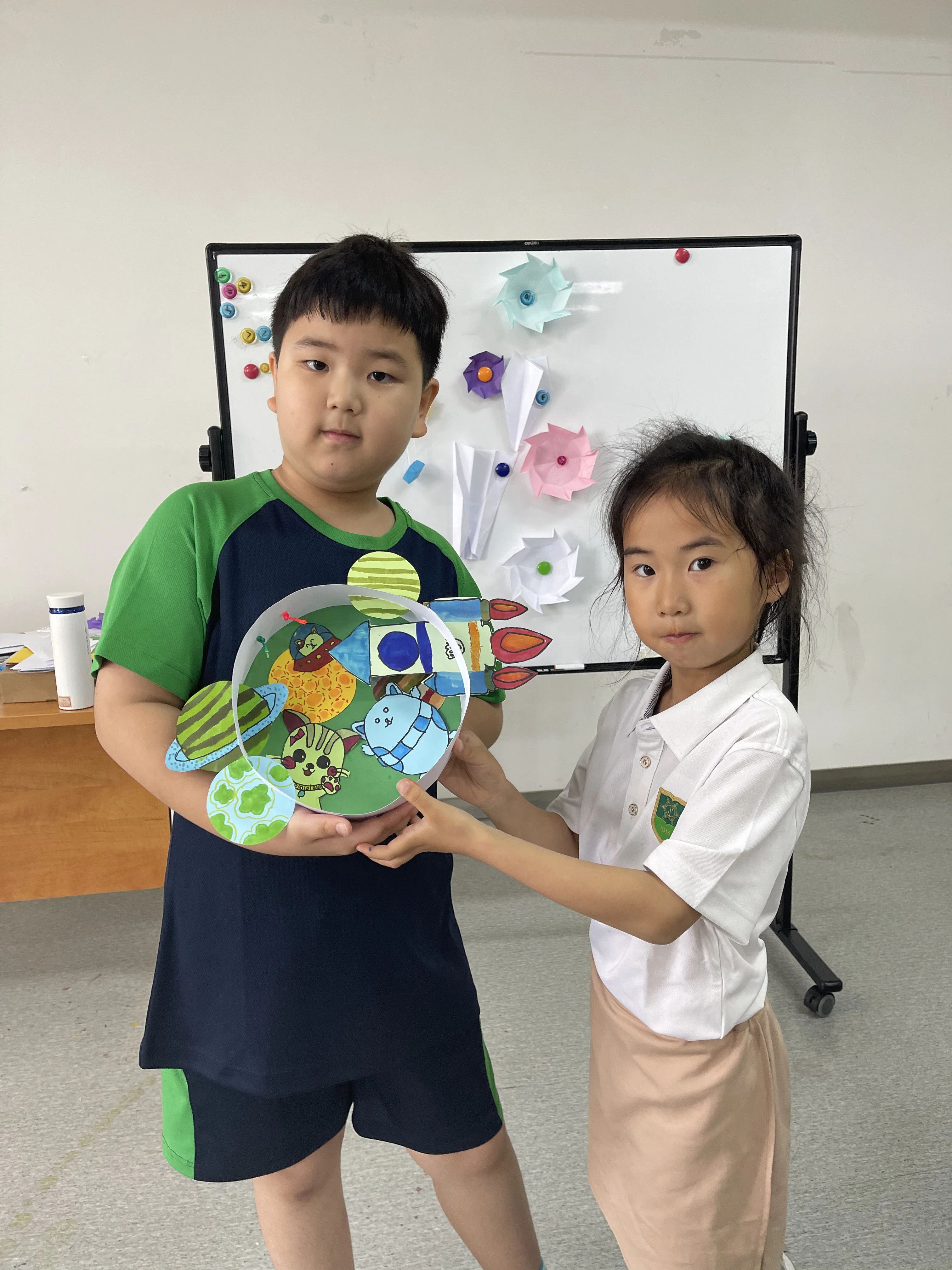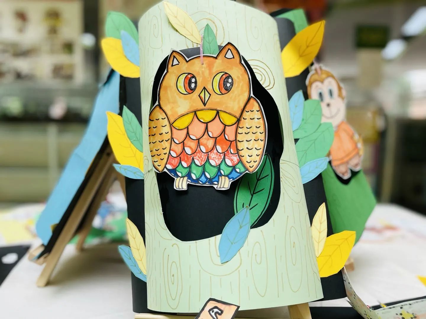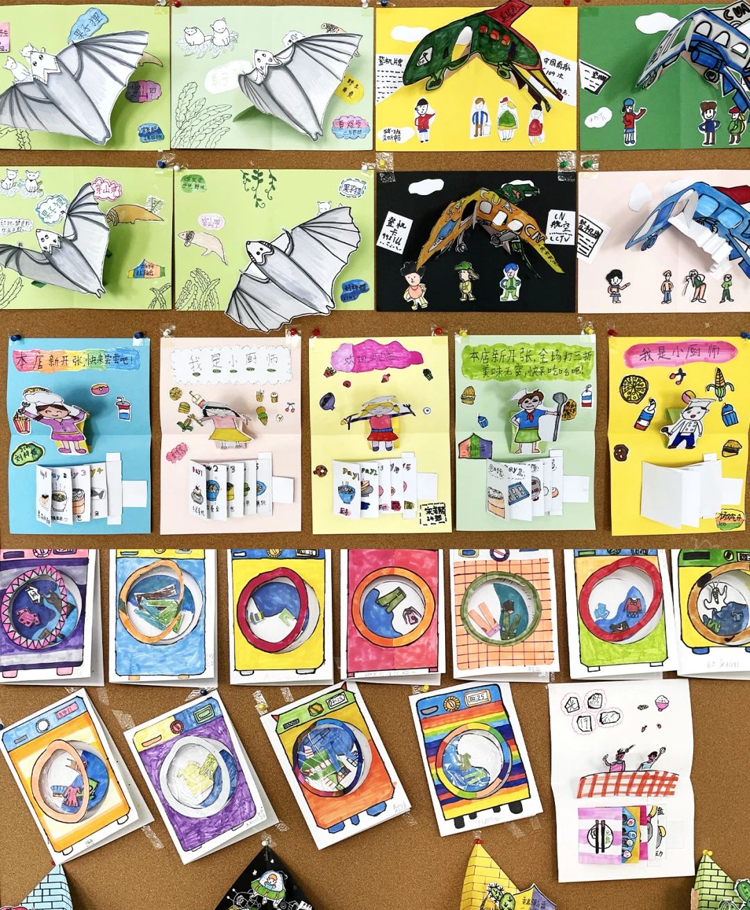 通过每一次课程学习不同纸艺手工制作知识点,在多元化的课程内容里让静态的画面动起来,让平面的绘画立起来,让学生的创意活起来,一系列创作课堂不仅增强了学生的动手能力和绘画能力,同时通过儿童的视觉、触觉等感官感知激发他们的脑部活动,在制作过程中锻炼了他们思维能力。