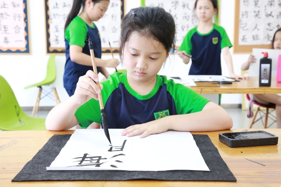 黄老师说:从一个孩子的执笔用笔,就可以看出她能不能写一手漂亮的字。在艺术楼5楼,学生的书法作品立于教室墙上,让参观的来客不仅驻足停留欣赏,要是您细品道尔顿随处可见的学生作品,那可得逛好一阵子呢。