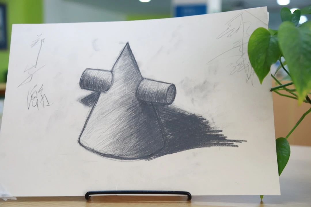 王老师说:素描课程不像带色彩的绘画那样重视总体和彩色,而是着重结构和形式。从表现的目的而言,素描一般用作学生提高造型能力的基本绘描练习,或作为创作前的整理、局部草稿练习、素材的搜集方法,并练习物体形象、动态、量感、质感、明暗、空间、色彩、比例、构图、变化统一、疏密等。从而培养学生的造型能力,为之后的绘画打下坚实的基础。