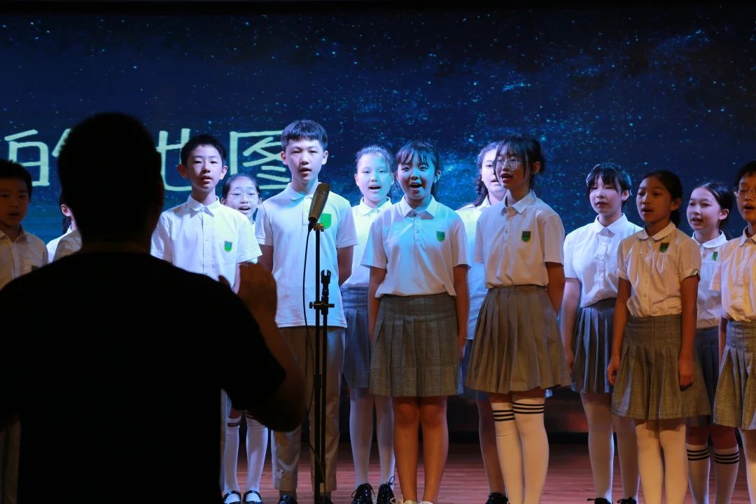 “漫天朝霞中美丽的天空,一颗晨星眨着眼睛...”一首悠扬空灵的《梦的地图》回响在剧场,研学行走课程分享大会时,合唱班的孩子们唱着,笑着苹果肌上扬起来。