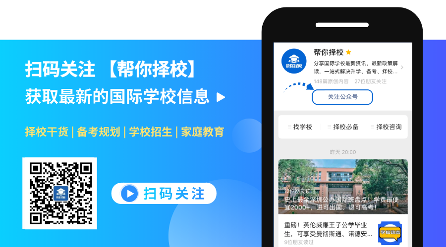 如果您想要提前了解关于国际学校的全面信息,家长们可以扫码关注“帮你择校”公众号了解国际学校最新资讯!