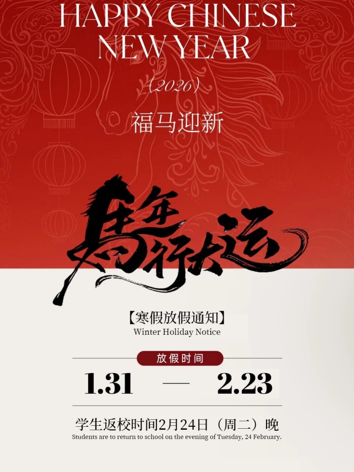 桃李未来湾区国际书院 | 岁末启新,共期春晖 | 2026年寒假放假通知及温馨提示