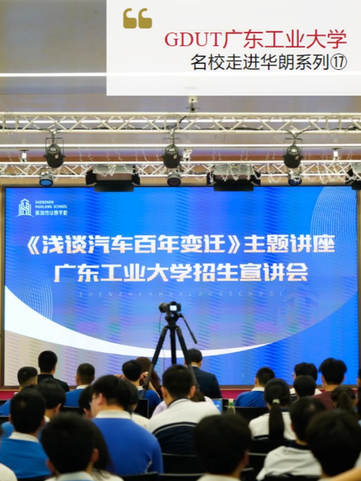 在科技飞速发展的今天,汽车早已不只是代步工具,更是工业文明的缩影、科技创新的载体,承载着人类对未来出行的无限想象。为帮助学生拓宽科技视野、明晰专业方向、搭建名校沟通桥梁,3月29日,名校走进华朗系列活动第17场——广东工业大学汽车专题讲座暨招生宣讲会走进华朗学校,为师生们带来知识与梦想的双重盛宴。活动现场,广东工业大学机电工程学院副教授、汽车工程系副主任刘延伟博士,招生办副主任张玉磊老师亲临授课与宣讲,华朗学校师生齐聚一堂,在历史与科技的交汇中,感受汽车工业的磅礴变迁,领略广东工业大学的工科魅力。#01HualangSchool见证百年汽车历史感受科技变革力量本次专题讲座由刘延伟教授主讲,主题为《浅谈汽车百年变迁》。刘教授以深厚的专业积淀,带领同学们纵览汽车从诞生到革新的完整历程,用生动的讲述与详实的资料,揭开汽车工业百年发展的神秘面纱。从汉字“车”的甲骨文溯源,到黄帝造车的古老传说、秦陵铜车马的工艺巅峰,中华车辆文明的深厚底蕴令人震撼;从1769年世界第一辆蒸汽驱动三轮汽车问世,到1886年卡尔・本茨发明现代汽车、1886年成为“汽车元年”,人类交通工具完成从畜力到机械动力的历史性跨越;从福特T型车与流水线生产开启汽车平民化时代,到欧洲、日本、韩国汽车工业相继崛起,再到中国汽车工业从1953年起步、到如今自主品牌领跑全球、新能源汽车成为核心引擎,百年汽车工业的演进脉络清晰呈现。面向未来,刘教授重点解读汽车工业电动化、智能化、网联化三大变革趋势,揭秘电动汽车的悠久历史、新能源三电核心技术、自动驾驶分级标准、智能座舱与车路协同前沿应用,让同学们深刻认识到:汽车正从单一交通工具,向“第三生活空间”加速进化,而这一切变革的背后,正是工程科技的强大支撑。02#HualangSchool广工实力全面解读点亮学子升学梦想专题讲座结束后,张玉磊老师带来全面、精准的招生宣讲,向华朗学子全方位展现这所省属重点大学、南方工科名校的硬核实力与独特优势,为有志于工科、汽车、智能制造领域的学子指明升学方向。张老师介绍,广东工业大学以工为主、多学科协调发展,37个国家一流本科专业,工程学跻身ESI全球前0.3‰,机械工程等学科实力强劲;机电工程学院作为学校王牌学院,拥有国家重点实验室,斩获多项国家科技奖励,在新能源汽车、智能装备等领域成果卓著。此外,学校还拥有自动化等多个新工科王牌专业。学校开设新能源汽车工程、机械设计制造及其自动化、智能制造工程等一流本科专业,推行“5i”新工科育人模式,深度联动华为、广汽、比亚迪等行业龙头,打造产教融合、科教协同、竞教贯通的培养体系,学生竞赛成绩、升学比例、就业质量均位居省内高校前列。针对2026年招生计划、广东省内录取位次、专业选择、升学深造、就业前景等问题,张老师逐一细致介绍,帮助学子们指引成长路径,点亮工科升学梦想。宣讲会尾声,华朗学生代表向刘延伟教授和张玉磊老师献上鲜花,戴胜霞校长代表学校赠送感谢状,对广东工业大学参与本次高校进校园活动表示衷心感谢。此次广东工业大学汽车专题讲座暨招生宣讲会走进华朗学校,不仅是一次科技知识的普及,更是一场名校资源的对接与升学梦想的启蒙。一方面,让学子们沉浸式感受汽车工业的历史底蕴与前沿科技,激发对工科、智能制造、新能源汽车等领域的学习兴趣;另一方面,搭建起中学与高校的沟通桥梁,帮助高中生清晰了解大学专业、招生政策与发展路径,提前规划学业与职业方向。本学年以来,学校持续开展“名校走进华朗”系列品牌活动,至今已成功举办17场,通过不断引入优质高校资源与前沿科技内容,为学生打造视野开阔、资源丰富的成长平台。未来,学校将继续深化与各大名校的合作,以更多高品质活动赋能学生全面发展,助力每一位华朗学子找准目标、追逐梦想,顺利迈入理想学府,在更广阔的舞台上绽放青春光彩。如果您想要提前了解关于国际学校的全面信息,家长们可以扫码关注“帮你择校”公众号了解国际学校新资讯!*综合内容来源学校,如有不妥,请告知。