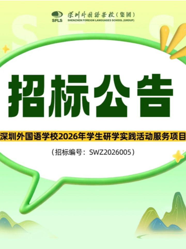 学生研学实践活动为认真落实《教育部等11部门关于推进中小学生研学旅行的意见》文件精神,帮助学生了解国情、增长见识,提高他们的社会责任感、创新精神和实践能力,学校设计了多元的研学路线,在尊重学生自主选择的基础之上,确定高中部和龙华高中部的学生前往福建、海南、湖南、浙江四省研学。深圳外国语学校就高中部、龙华高中部2026年学生研学实践活动服务项目进行公开招标,邀请合格投标人就本项目及有关服务提交密封投标,具体事项如下。一项目名称深圳外国语学校2026年学生研学实践活动服务项目。本项目分为A、B、C、D、E五个包,需分别递交投标文件。二项目预算非财政预算资金,具体限额见附件。三投标人资质要求1.投标人满足《中华人民共和国政府采购法》第二十二条规定。(提供相关证明文件扫描件,加盖投标人公章,原件备查)2.投标人在近三年内(即至少从2023年3月开始起算,供应商成立不足三年的可从成立之日起算)无行贿犯罪记录。(提供承诺函或相关证明文件并加盖投标人公章,原件备查)3.投标人在招投标活动中有串通投标、弄虚作假不良行为记录被暂停投标资格期间或涉嫌串通投标、弄虚作假并正在接受主管部门调查的,其投标申请不被接受。(提供查询证明或承诺函)四技术及商务要求详见附件。五投标文件递交注意事项1、截止时间:2026年4月3日11:00,逾期将不予受理。2、送达地点:深圳外国语学校高中部G1105室(地址:深圳市盐田区盐田路1号);投标时应递交投标文件正本一份和副本二份(装订并密封)。六投标文件送达联系人黄老师0755-25282010。七开标时间和地点学校自定。八评定标办法综合评分法。九评定结果校园网公示。十项目款结算方式以实际发生为准。如果您想要提前了解关于国际学校的全面信息,家长们可以扫码关注“帮你择校”公众号了解国际学校新资讯!*综合内容来源学校,如有不妥,请告知。