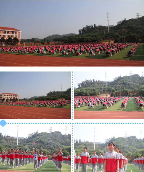 旋律飞扬,面带笑容,动作流畅,整齐划一。高中部自编韵律操《你最最最重要》充分展示了学生卓越的风采,让我们相信,在青春里,自信的你,运动的你,努力的你,最最最重要。