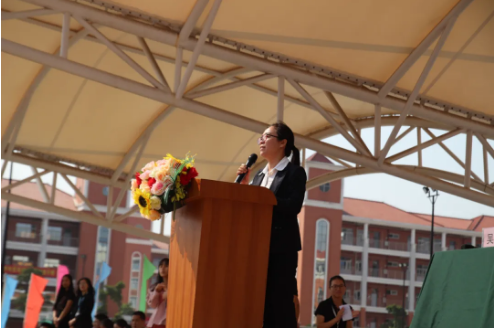 校长助理兼国际部校长秦丽女士发表重要讲话:“比赛虽然已经结束,但它的影响是深远而持久的,我希望各班坚持高标准、严要求,使体育锻炼质量再上一个台阶,更希望你们能够珍惜青春的大好时光,努力拼搏、奋发进取,在学习生活中锻炼自己、塑造自己、展示自己,主宰自己的人生、把握自己的命运、成就自己的未来!”