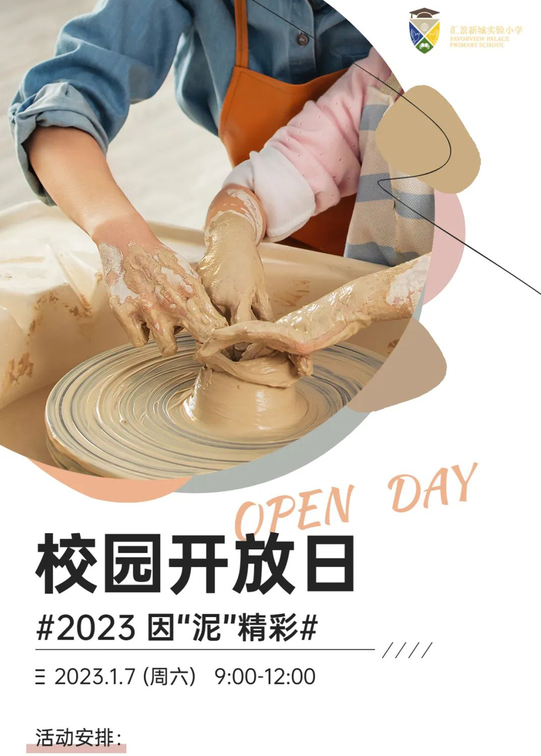 1月7日(周六),汇景新城实验小学2023年首场校园主题开放日“2023因‘泥’精彩”重磅来袭!