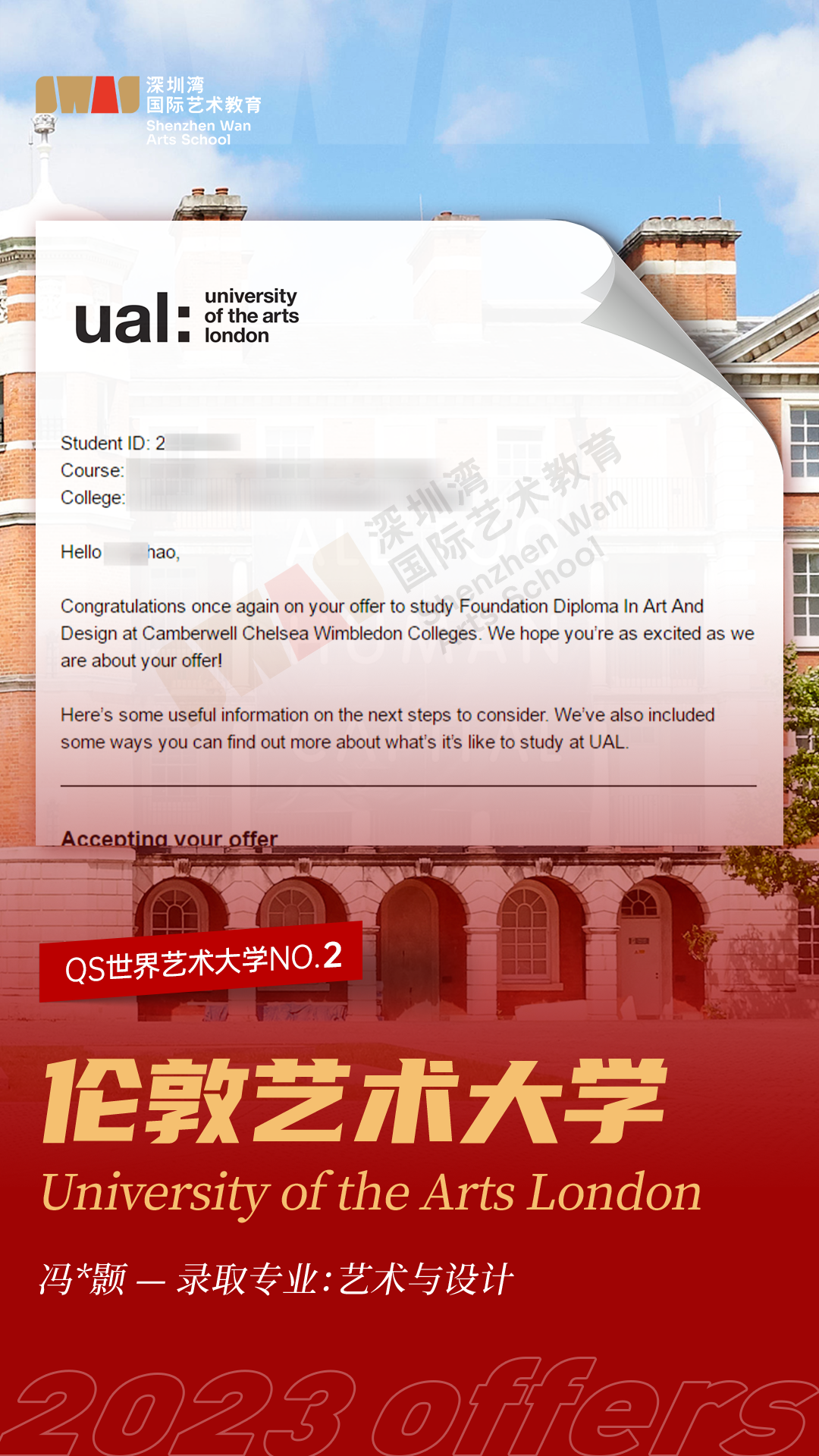 世界top2!深圳湾国际艺术教育SWAS学子获伦敦艺术大学录取Offer!