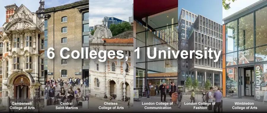 伦敦艺术大学由六所学院组成,分别为坎伯韦尔艺术与设计学院,中央圣马丁艺术与设计学院,切尔西艺术与设计学院,伦敦时装学院,伦敦传媒学院,温布尔登艺术学院。
