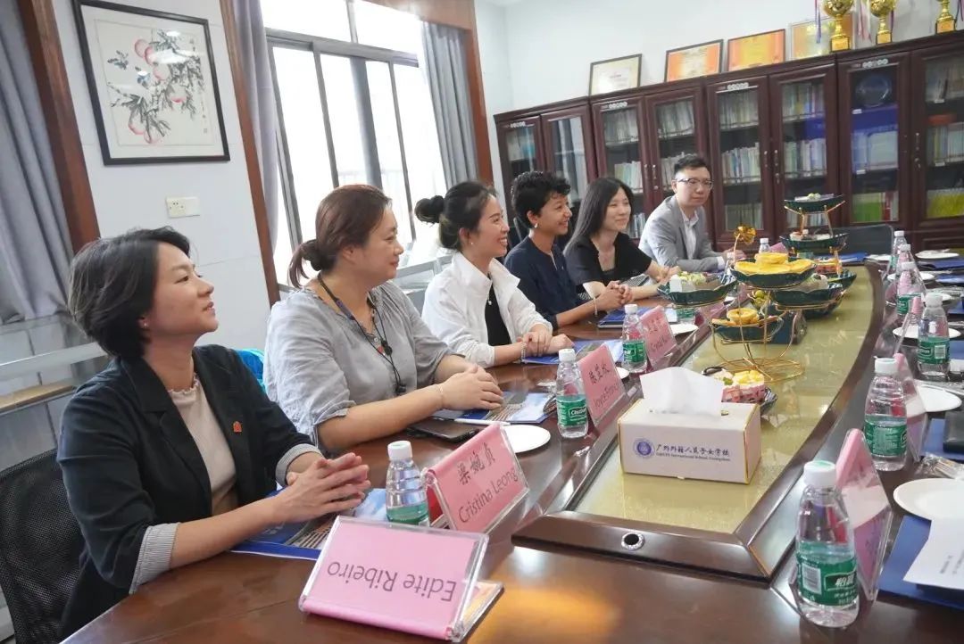 随着办学水平和质量的不断提高,广外外籍人员子女学校吸引了越来越多关注的目光。11月3日下午,澳门国际学校(下称TIS)校务总监关慧诗、国际事务行政主任陈芷欣等一行九人莅临我校考察并指导工作。双方就课程教研、师资共建、学生交流等维度,相互交换了各自先进的经验及现有做法,探讨了未来两校之间的教学交流、师资培训、共建活动思路,积极促成与澳门顶尖学校姊妹学校缔结。