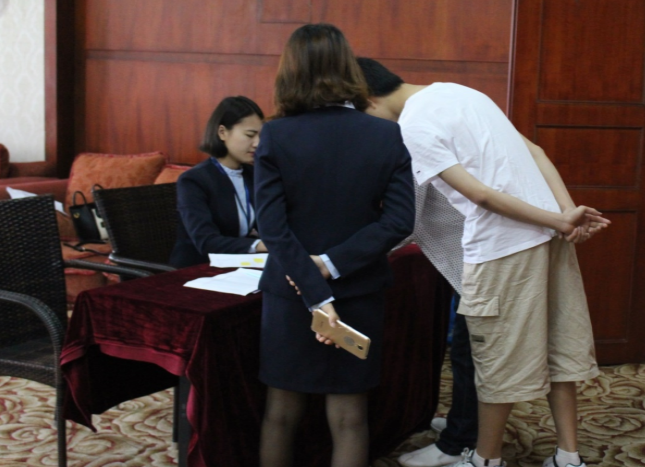 满怀期待的家长们带着孩子陆续签到入场...
