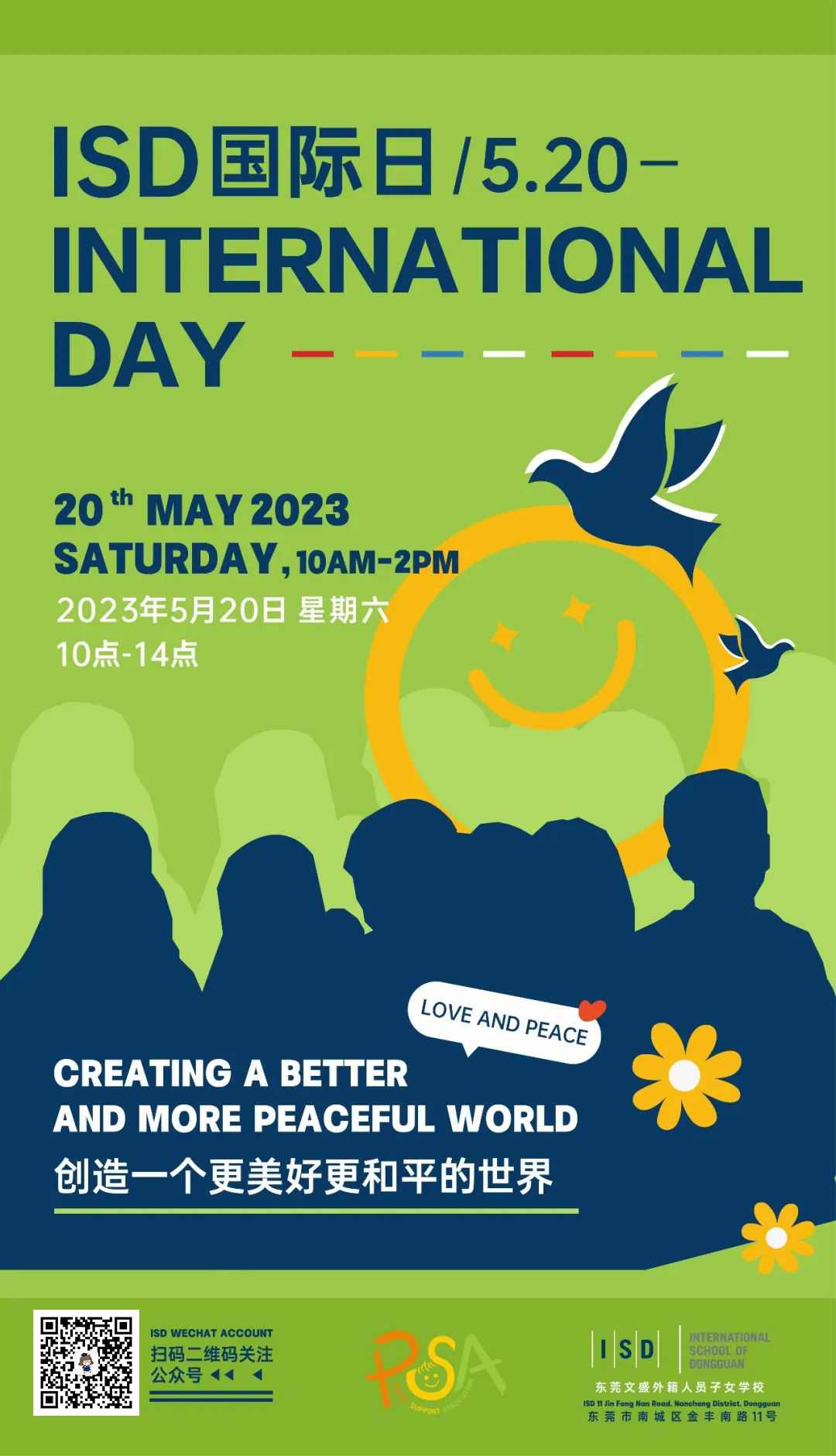 一年一度的国际日是ISD家委会主办的一项重要活动,本年度的国际日将于5月20日星期六举行。这将是一个让大家交流多元文化的机会,也是一个ISD社区成员展示其国际公民身份的平台。今年我们的国际日主题是:创造一个更美好、更和平的世界。