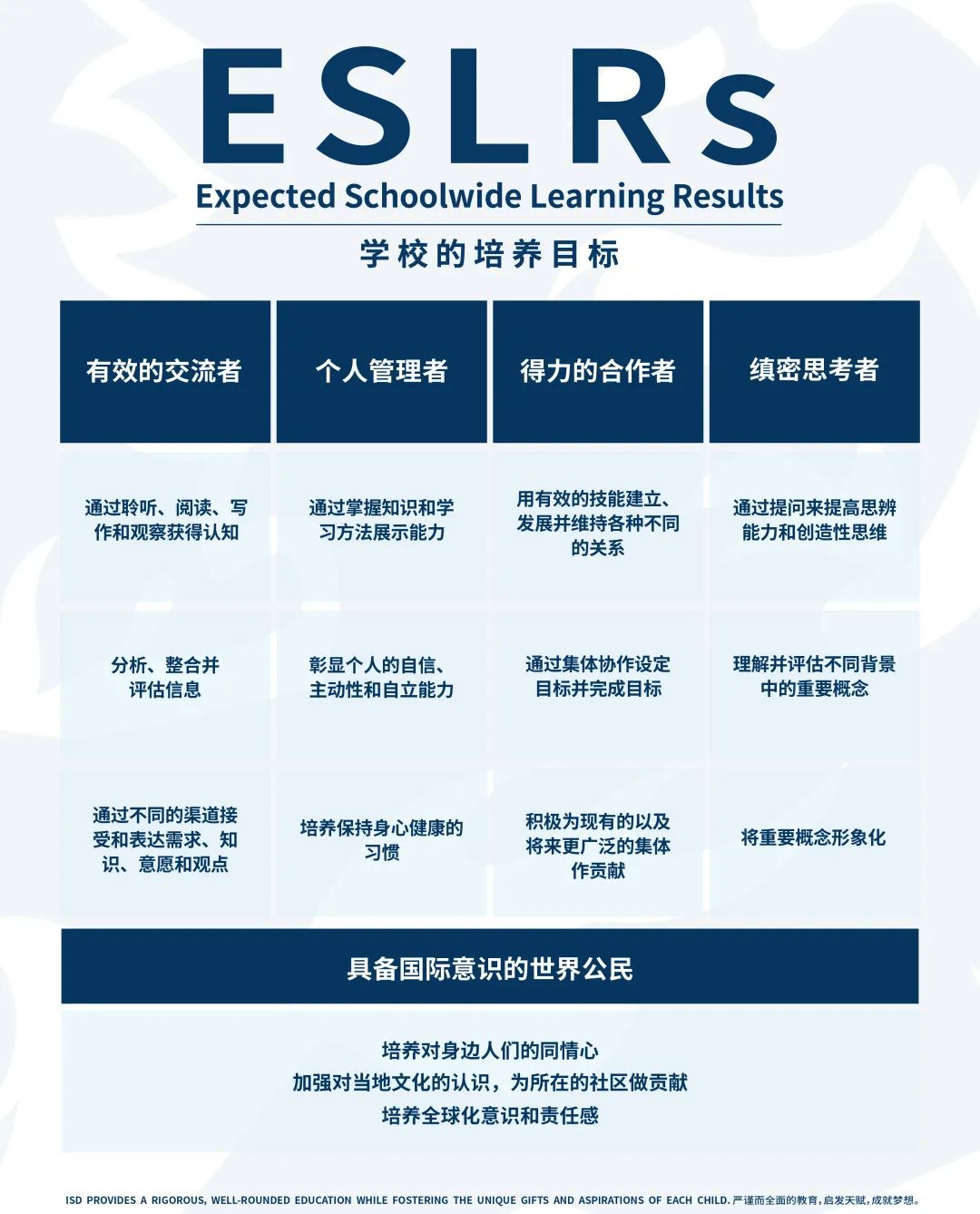 其次,ISD的课程具有广泛的平衡性、概念性和关联性。除了数学、语文、科学和社会研究等核心课程外,视觉艺术、音乐、戏剧艺术等其他选修课对学生的成长也很重要。体育、课后活动和俱乐部可以培养学生的合作、问题解决、沟通能力和领导能力。此外,学校还鼓励学生参与校外学习和学生组织,例如 "校外学习周"、学生会和IB CAS项目等,从中获得全面发展。