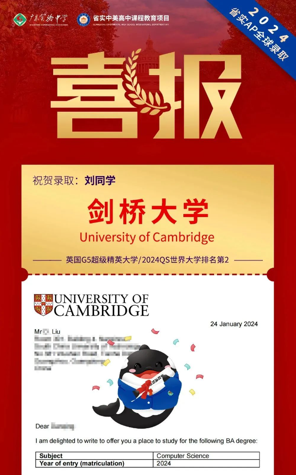 省实中美课程(省实AP) | 剑桥大学录取OFFER重磅来袭!