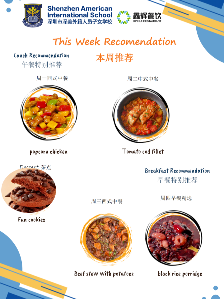 深圳市深美外籍人员子女学校(SAIS) | 2026/02/02-02/06 餐单Menu