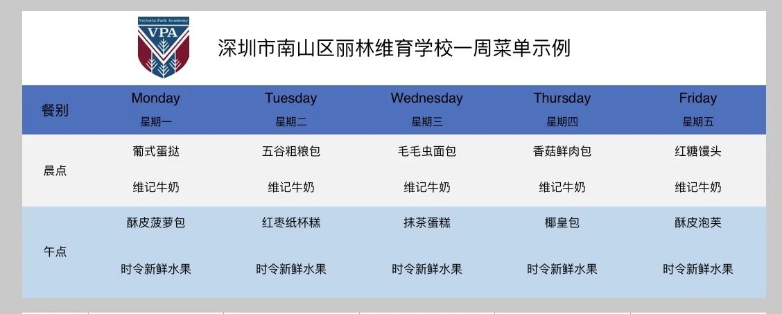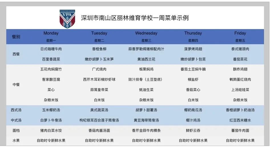 丽林维育学校食堂的菜单涵盖了中西方的饮食风味,以满足学生不同的口味和需求。