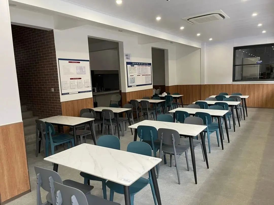 食堂位于学校的后方,拥有宽敞的空间和现代化的设施,为学生和员工提供了一个舒适的用餐环境。