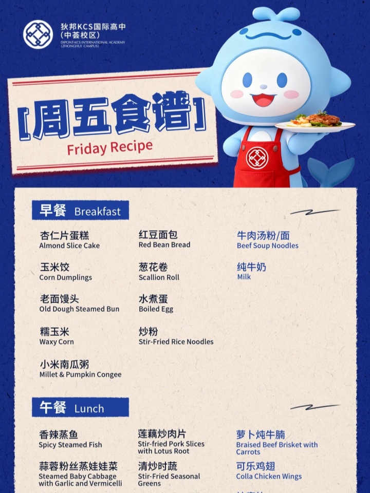 狄邦KCS国际高中(中荟校区)| Weekly Menu | DKIA 每周食谱分享(3.23~3.27)