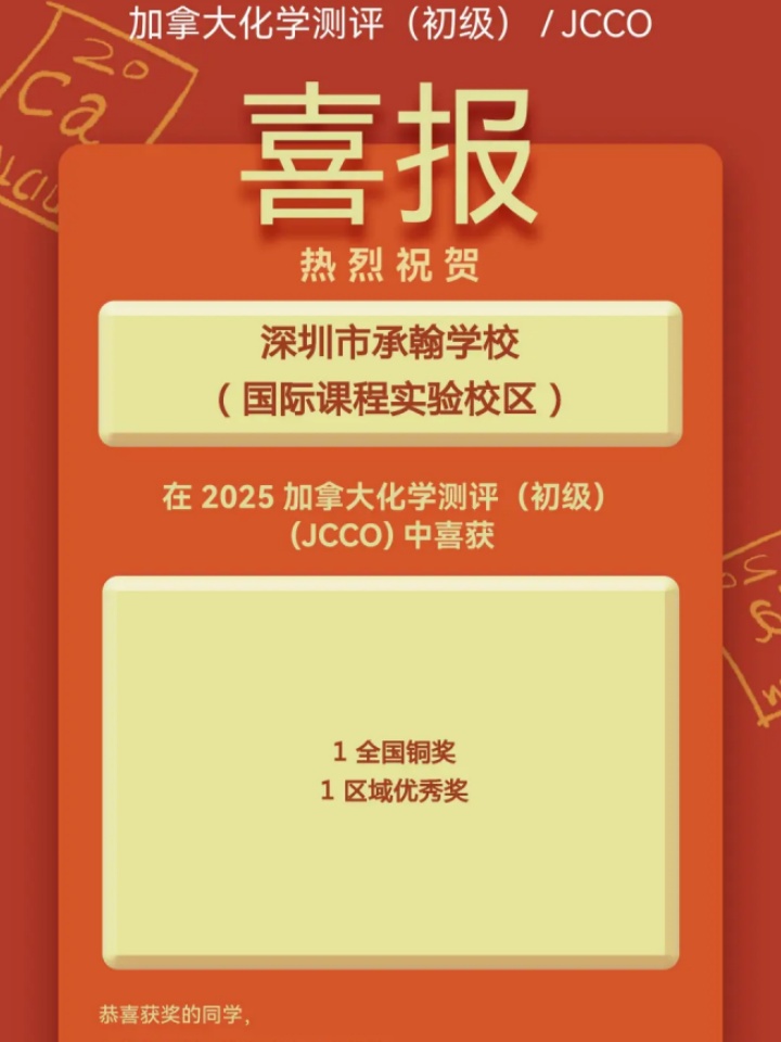深圳市承翰学校(国际课程实验校区)| 喜报 | 承翰国际学子在2025 JCCO加拿大化学测评斩获佳绩