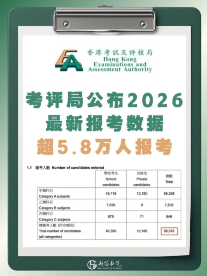 香港新苗书院 | 考评局最新报考数据!2026年DSE5.8万人报考